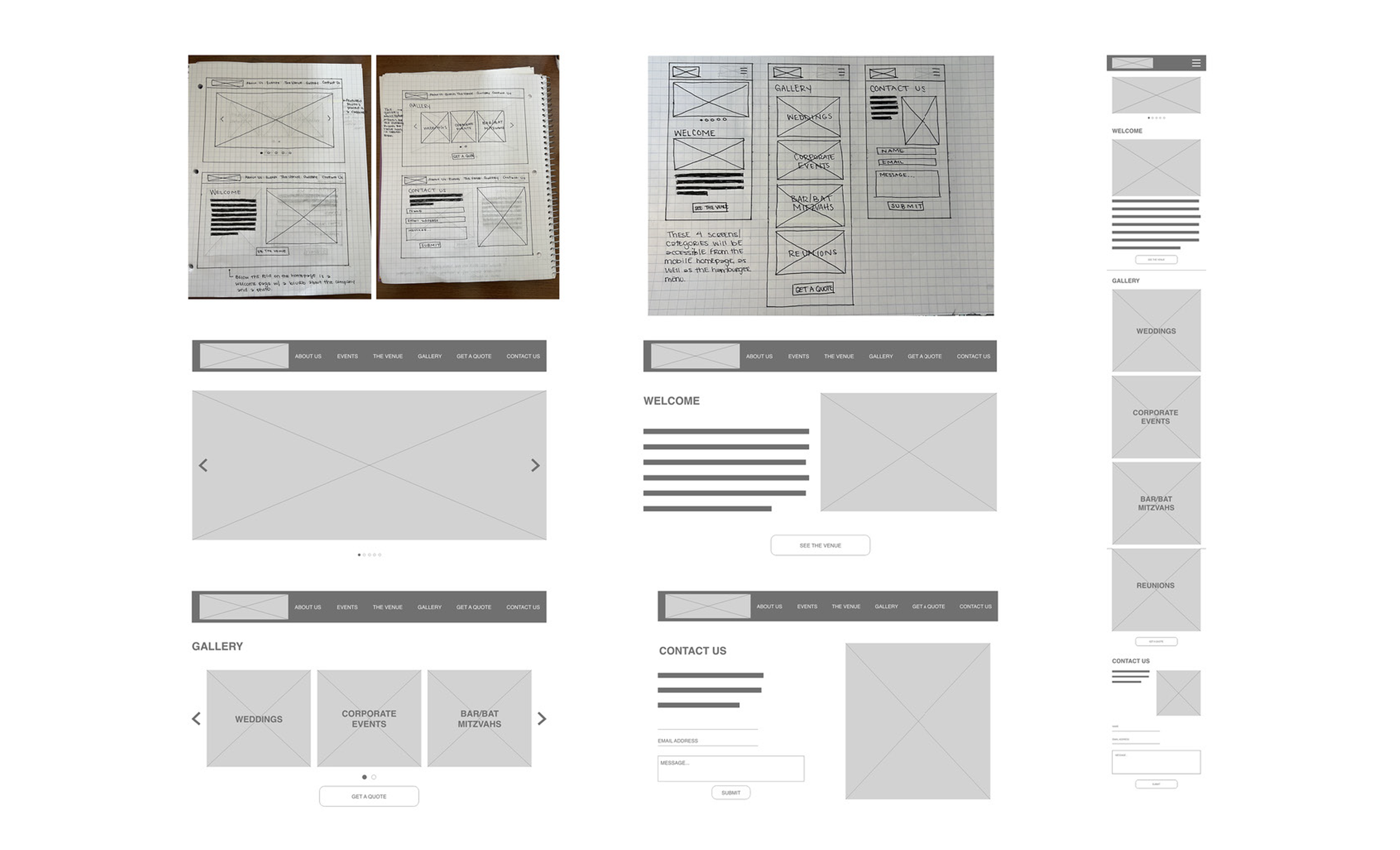 • Initial concepts and ideas (paper + digital wireframes)